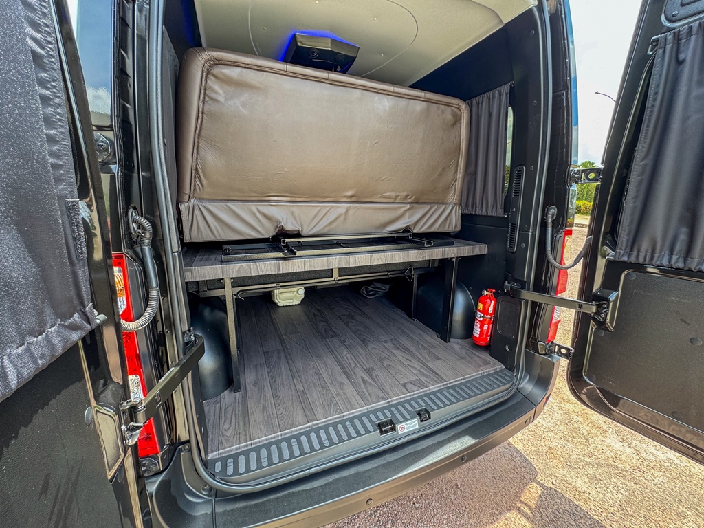 Banco traseiro conversível em cama, ideal para descanso em viagens